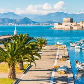 Na zakończenie dnia czeka na Ciebie urokliwe Nafplion – pierwsza stolica niepodległej Grecji i ważny port od epoki brązu. Strategiczne położenie miasta zaowocowało trzema potężnymi fortyfikacjami: imponującą twierdzą Palamidi, mniejszą Akronafplia oraz zamkiem Bourtzi, majestatycznie wznoszącym się na wysepce u wybrzeży starego miasta. Spacerując wąskimi, urokliwymi uliczkami, podziwiać będziesz eleganckie weneckie domy, neoklasyczne rezydencje i przytulne kawiarnie nad samym morzem. To idealne miejsce na zakupy, tradycyjny grecki obiad lub relaks przy kawie. Latem możesz dodatkowo skorzystać z kąpieli w krystalicznie czystych wodach plaży Arvanitia.