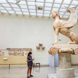 Następnie odwiedzimy muzeum w Delfach, gdzie zobaczysz niezwykłe artefakty, m.in. słynny brązowy posąg woźnicy, sfinksa Naksyjczyków i posąg Antinousa. To prawdziwa lekcja historii i sztuki starożytnej Grecji! Po smacznym lunchu, nie przegapimy okazji do podziwiania sanktuarium Ateny Pronaja – jednego z najczęściej fotografowanych miejsc w Delfach.