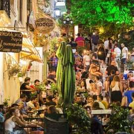 Udaj się do urokliwej dzielnicy Anafiotika z wąskimi uliczkami u podnóża Akropolu. Kontynuuj wędrówkę ulicami Plaka, Monastiraki i Psyri, odkrywając najciekawsze restauracje i bary, które warto odwiedzić.