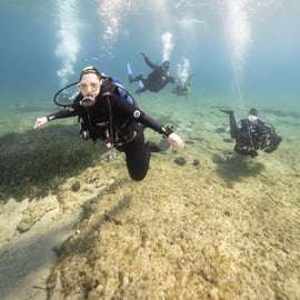Zanurz się w podwodnym świecie Aten! Zapraszamy na niezapomnianą przygodę z nurkowaniem SCUBA pod okiem doświadczonych instruktorów. Odkryj ukryte piękno zatoki Vouliagmeni – czekają na Ciebie trzy malownicze zatoki, kolorowe rafy i niezwykłe miejsca nurkowe!