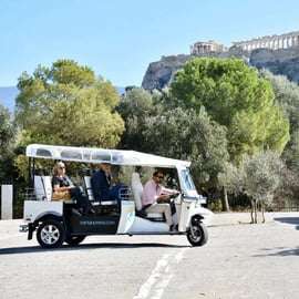 Zanurz się w magicznej atmosferze Aten podczas niezapomnianej wieczornej przejażdżki! Zostaniesz odebrany z hotelu lub spotkasz się z kierowcą w dogodnym miejscu w centrum miasta. Wsiądź do uroczego, elektrycznego tuk-tuka – idealnego pojazdu do poruszania się po wąskich, urokliwych uliczkach greckiej stolicy.