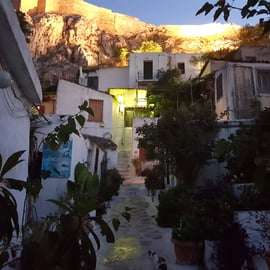 Nasza podróż kontynuowana będzie w urokliwej dzielnicy Plaka, jednym z najstarszych i najbardziej klimatycznych zakątków Aten. Spacerując jej uliczkami, poczujemy się, jakbyśmy cofnęli się w czasie, krocząc śladami starożytnych Greków. Podziwiać będziemy podświetlony w nocy Akropol, a także Wieżę Wiatrów, marmurową wieżę zegarową i Rzymską Agorę – pierwszy w historii plac handlowy. Po obejrzeniu imponujących pozostałości Biblioteki Hadriana, zanurzymy się w atmosferze tętniącego życiem Monastiraki, a następnie odkryjemy urokliwe uliczki Psirri.