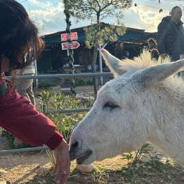 Wyszczotkuj ich sierść, pogłaszcz i poznaj inne zwierzęta na farmie, w tym kurczaki, psy i koty. Schronisko spełnia wytyczne dotyczące dobrostanu zwierząt, zapewniając bezpieczne i etyczne doświadczenie.
