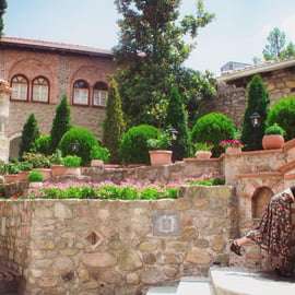 Przed południem dotrzesz do Meteory, gdzie czeka na Ciebie lokalny przewodnik. Rozpocznij fascynującą eksplorację tego niezwykłego miejsca. Zwiedzisz majestatyczne klasztory – wejdziesz nawet do trzech z nich, odkrywając ich urokliwe wnętrza. Poznasz także tajemnice Meteory: starożytne jaskinie pustelników, w tym imponującą jaskinię św. Jerzego Mandilasa.
