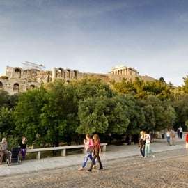 Alternatywnie możesz odwiedzić Starożytną Agorę, dobrze zachowaną agorę używaną do prowadzenia działalności religijnej, społecznej i kulturalnej w starożytnej Grecji. Agora obejmuje najlepiej zachowaną świątynię w Grecji, Świątynię Hefajstosa, a także Więzienie Sokratesa. Zakończ swoją przejażdżkę zjedzeniem Souvlaki w Plaka, najlepszej i najbardziej historycznej dzielnicy Aten.