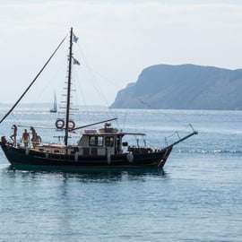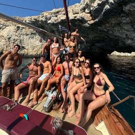 Następnie popłyń na małą wyspę Hydrousa, ukryty klejnot po drugiej stronie Riwiery, aby po raz drugi popływać w nieskazitelnie czystych wodach. Odpręż się na pokładzie przy relaksującej muzyce, gdy niebo zmienia kolor na złoty i różowy, tworząc idealne tło dla romantycznych zdjęć i cennych wspomnień.