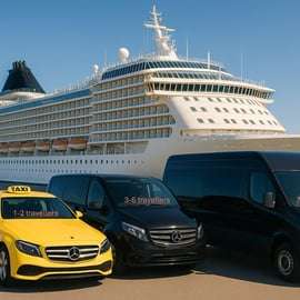 Twój profesjonalny kierowca będzie czekał na Ciebie po przyjeździe lub odbierze Cię bezpośrednio z hotelu, Airbnb lub lotniska i zawiezie do portu. Podróżuj przestronnym, klimatyzowanym pojazdem dostosowanym do wielkości Twojej grupy: sedanem/taksówką dla 1–2 pasażerów (wybierz opcję 3, jeśli wolisz minivana), minivanem dla 3–6 osób lub minibusem dla 7–12 osób.