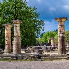 Spaceruj wśród ponadczasowych pomników, zaczynając od Świątyni Hery, świętego miejsca, gdzie przed każdymi Igrzyskami zapala się współczesny Płomień Olimpijski. Następnie udaj się do majestatycznej świątyni Zeusa, w której znajdował się kolosalny posąg Zeusa złożony ze złota i kości słoniowej – jeden z siedmiu cudów świata starożytnego.